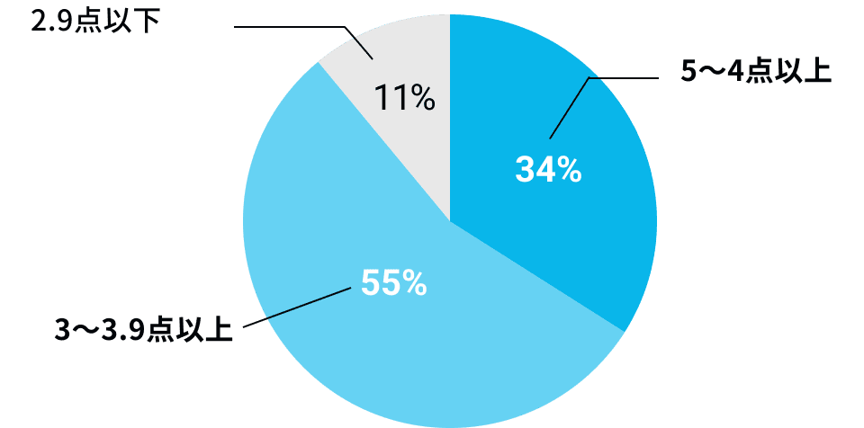 5点満点中4点以上を付けた方が約34%、3点以上を付けた方が約89%でした。