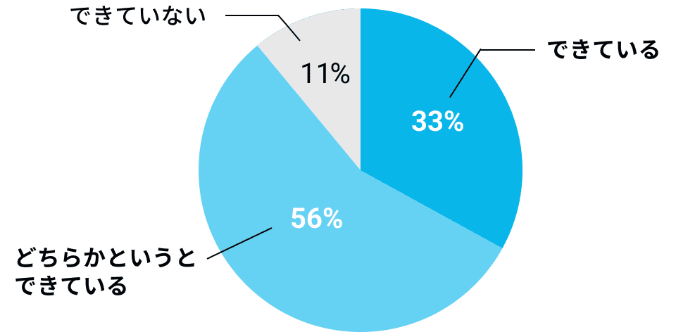 できていますか?両立ができている方が約33%、どちらかというとできている方を含めると約89%となりました。